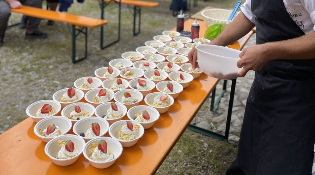 - assaggio di canederlo di montagna dal cuore fondente al burro di malga, Spressa delle Giudicarie DOP ed erbe aromatiche
